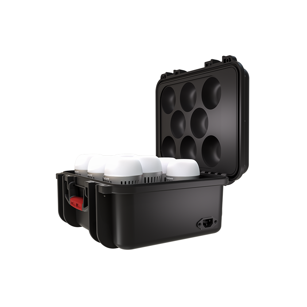Hard-Shell Charging Case to Simultanously Store, Protect, & Charge Up to 8 Lights