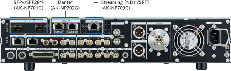 Streaming I/O options such as NDI® and SRT to be attached to the rear terminal of AK-UCU700/UCU700S/UCU710/UCU710S
