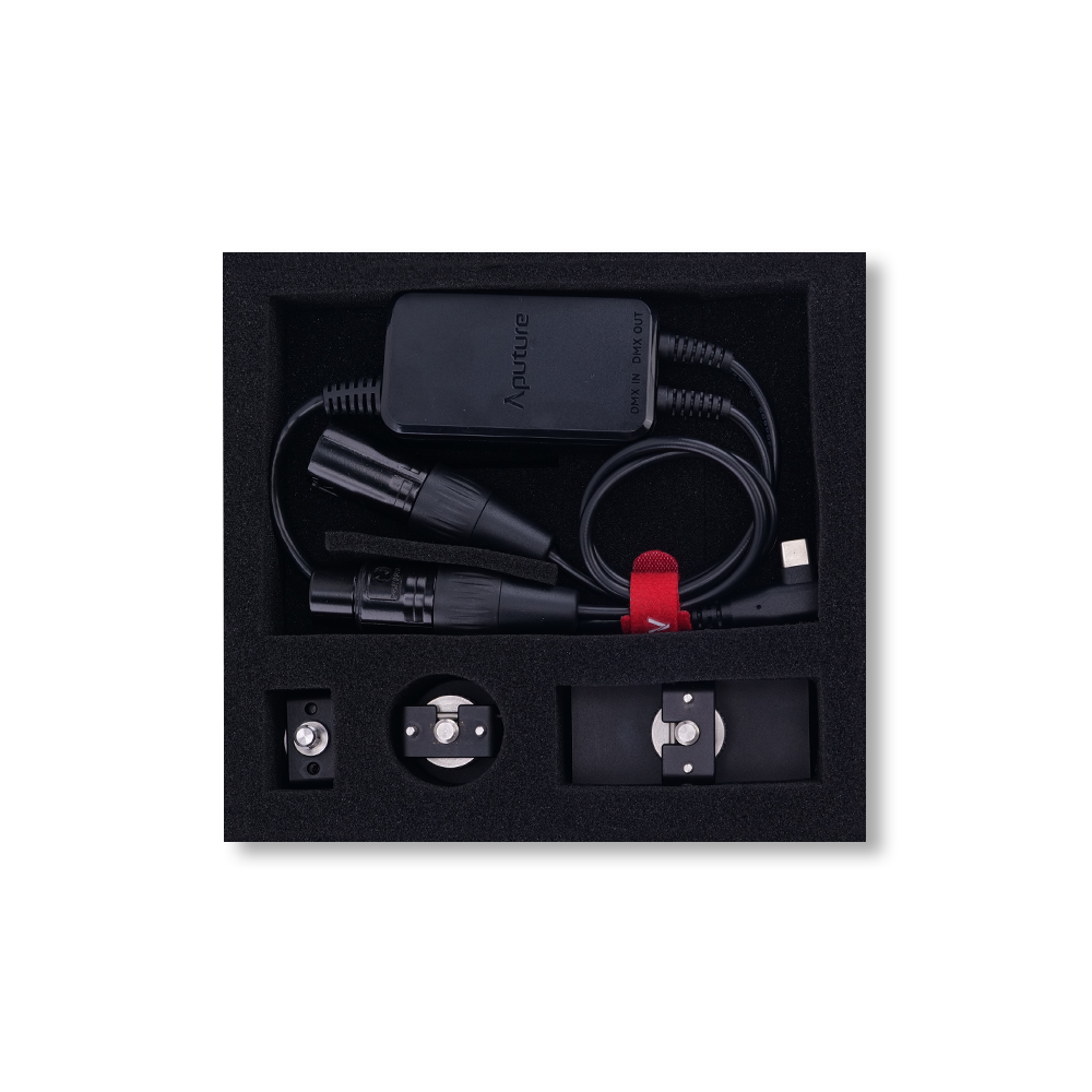 Add 5-pin DMX control to Aputure MT Pro, INFINIBARs, and MC Pro lights over USB-C. Comes as individual adaptor or as a kit with 1/4-20″ mounting hardware.