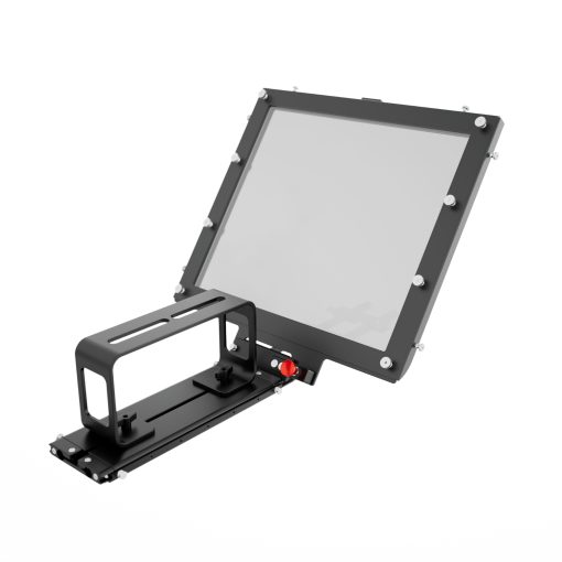 The hood of the teleprompter is anchored to the frame with bolts and additionally secured with magnets for extra stability.
