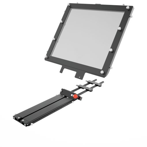 The 19-inch Teleprompter includes a rail that allows you to easily balance your entire teleprompter setup so that you don’t need a counter weight. The teleprompter can be offset along the sled