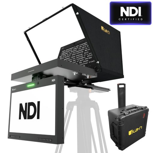 Aura™ 19″ PTZ POE++ NDI Teleprompter & NDI Talent Monitor w/ Full NDI Encoding/Decoding & IP Tally Light + Travel Kit