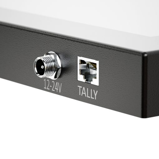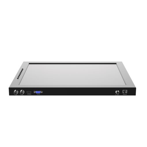 The prompter monitor features a tally light that illuminates red and green. A green tally light is typically used to indicate that a camera is in preview mode. This means that the camera’s output is being sent to a monitor, but it is not currently on air. This allows the talent, director, and production crew to check the composition, focus, and other aspects of the shot before it goes live. A red tally light is used to indicate when a camera is live or on-air.