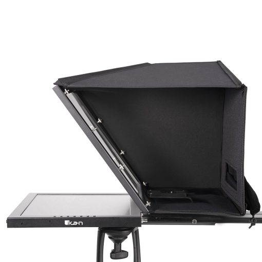 The Ikan PTZ Teleprompter system is a unique PTZ teleprompting system that enables the PTZ camera’s pan, tilt and zoom capabilities while still behind the reflective teleprompter glass. You can easily pan the camera between multiple people reading from the same script.