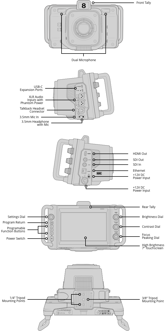 2 x USB-C 3.1 Gen 1 expansion ports for external media for recording Blackmagic RAW.