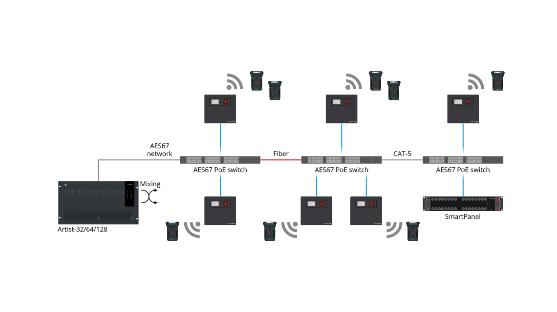 Antenna distribution via SMPTE 2110-30 (AES67) IP network