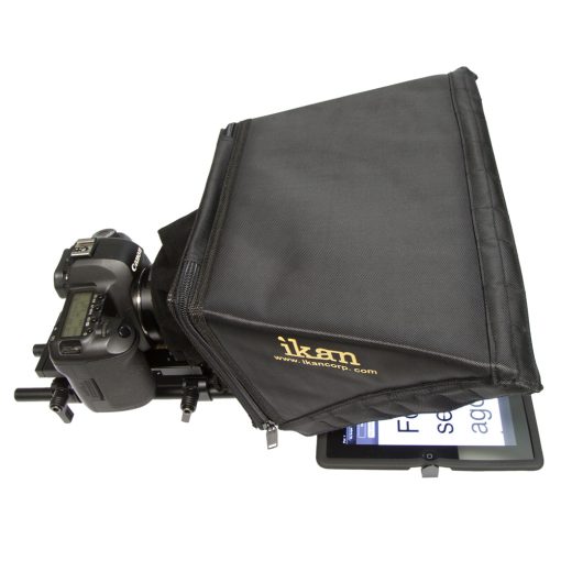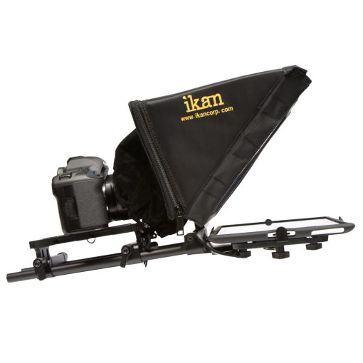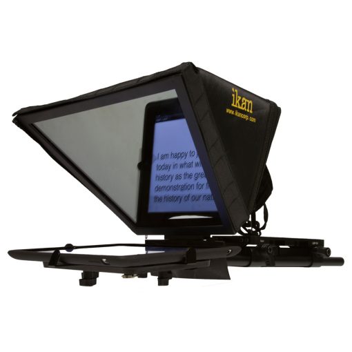 Looking for an inexpensive way to integrate your tablet into your everyday video production workflow? ikan has the solution. The Universal Tablet Teleprompter Kit is a complete out-of-the box solution that turns your tablet into a field ready teleprompter. Based on our popular Elements camera support system, ikan’s Universal Tablet Teleprompter Kit is a portable through the glass teleprompter when you need it and a robust 15mm rod based camera support system when you don’t. Compatible with any iPad, Android, or Windows teleprompter software application and complete with ikan’s EV2 Adjustable Camcorder Baseplate, 12” rods, new and improved high quality 30/70 prompter glass with frame, and an adjustable universal mount that’s compatible with the majority of compact tablets out on the market.
