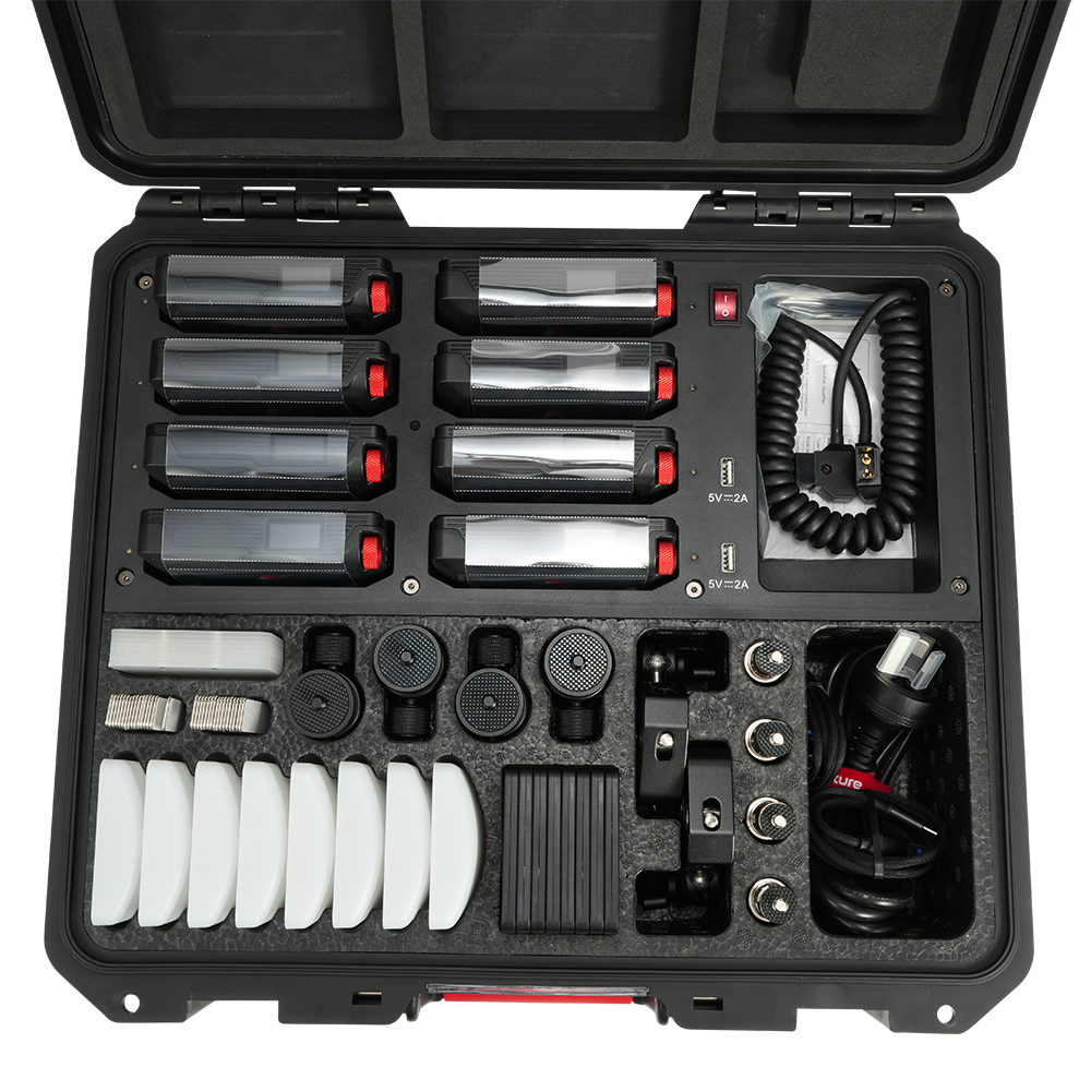 With IP65 weather resistance and CRMX control, MC Pro is ready for your production challenges. Available individually or organized in an 8-light kit with charging case.