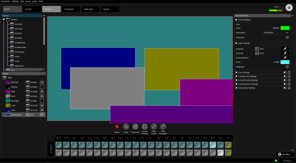This allows using in larger scale live productions with more scenes and more input sources.
