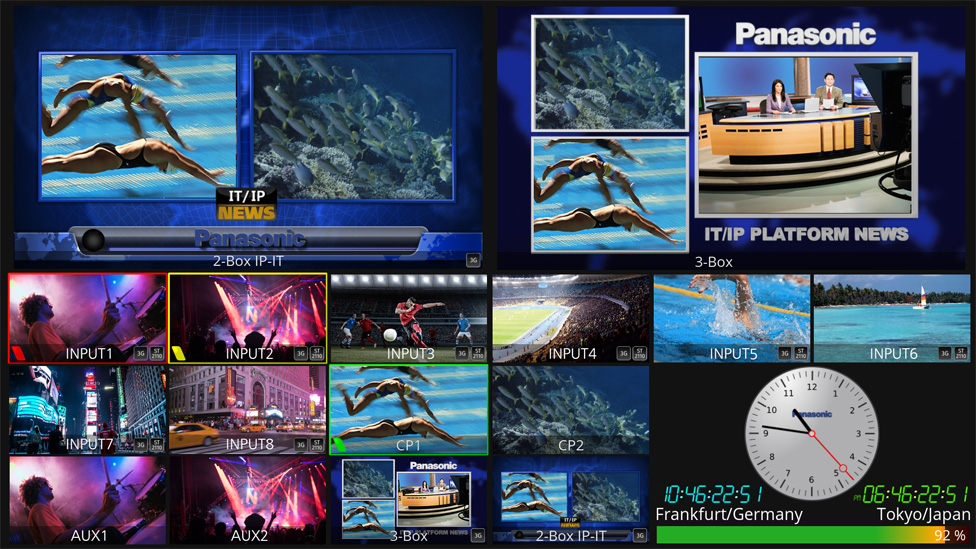The Canvas function enables the production of videos in a special format, such as 32:9 for wall display, in addition to the standard 16:9 format. Up to 12K (66M pixels) resolution is supported at AT-KC2000/2000S1. With the freely customizable multiviewer, videos with unique aspect can be displayed as is.