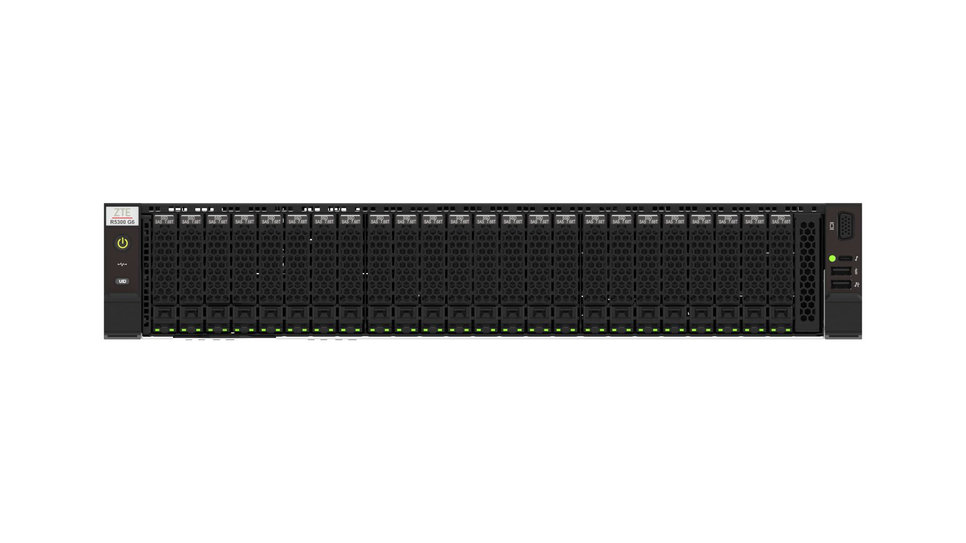 The R5300 G6 is a new-generation 2U2-socket general-purpose rack server of ZTE. It supports two Intel® Xeon® 6 energy-efficient core processors. With a high-density, modular, and streamline design, the R5300 G6 features high performance, large capacity, high reliability, easy scalability, and easy management. It is widely applicable to cloud computing, big data, virtualization, AI inference, and other fields.