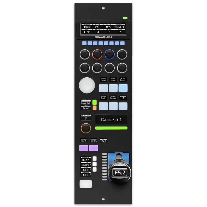 SKAARHOJs most advanced, feature-packed universal camera shading panel for all types of cameras, including cinema, PTZ, studio, and miniature models. Unique in every aspect but reassuringly familiar where it matters. With customizable controls and real-time feedback, the RCP Pro ensures perfect color grading and exposure for any production environment.