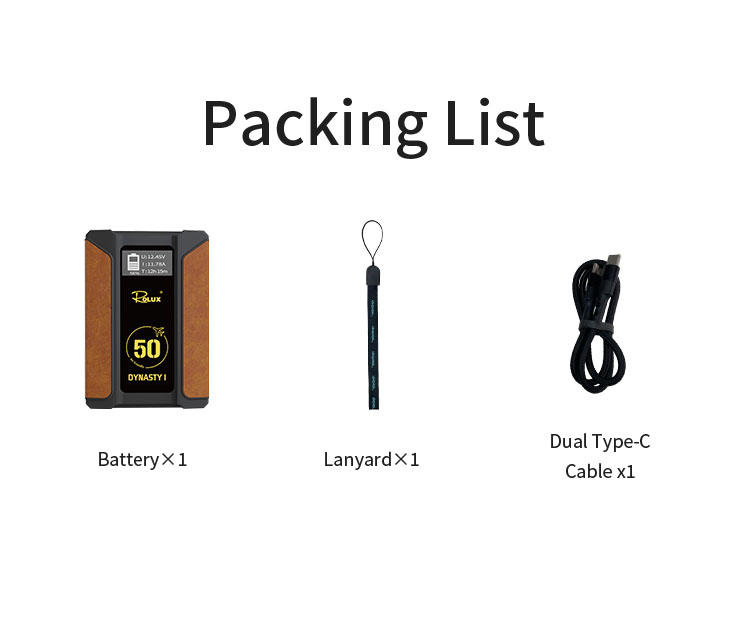 Product Features ●The Rolux DYNASTY I 50Wh V Mount Battery is a versatile power source designed for professional video and photography equipment. It offers the following features: