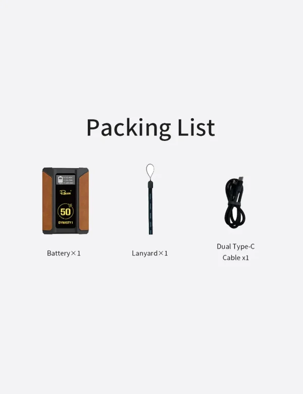 ● The Rolux DYNASTY Series V-Mount Battery 99Wh is a versatile and high-capacity power source designed for professional video and photography equipment. It offers the following features: ● 99Wh Capacity: Provides long-lasting power to your devices. ● D-TAP Interface: Connect various accessories that use D-TAP power. ● USB-A Interface: Charge USB devices such as smartphones and tablets. ● Bidirectional USB-C Interface: Supports PD2.0 and PD3.0 input/output with a maximum power of up to 65W. ● 12VDC Interface: Suitable for devices with a 12V input requirement. ● 8.4V DC Interface: Compatible with equipment requiring 8.4V input. ● OLED Screen: Display battery status and other relevant information. ● 1/4″ Threaded Hole: Allows for easy mounting on tripods, octopus, stabilizers, and other equipment.