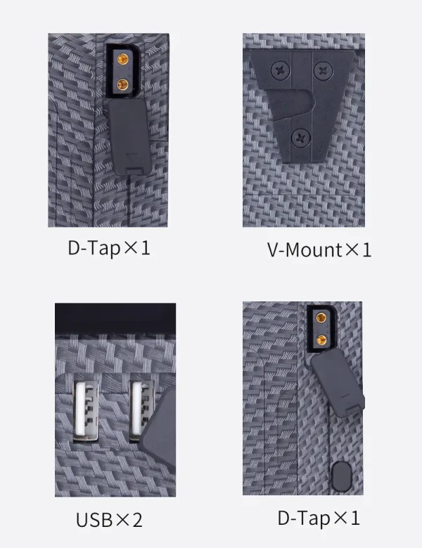 • Multiple Output Ports: Equipped with D-Tap and USB ports for powering and charging various accessories.